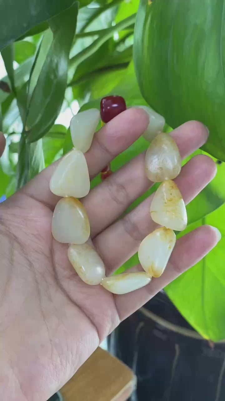 肉质细腻干净,油性十足,籽型饱满,手串的整体设计很独特,精致的工艺和巧妙的色彩搭配让人赞叹不已,展现出一种优雅而高贵的气质。