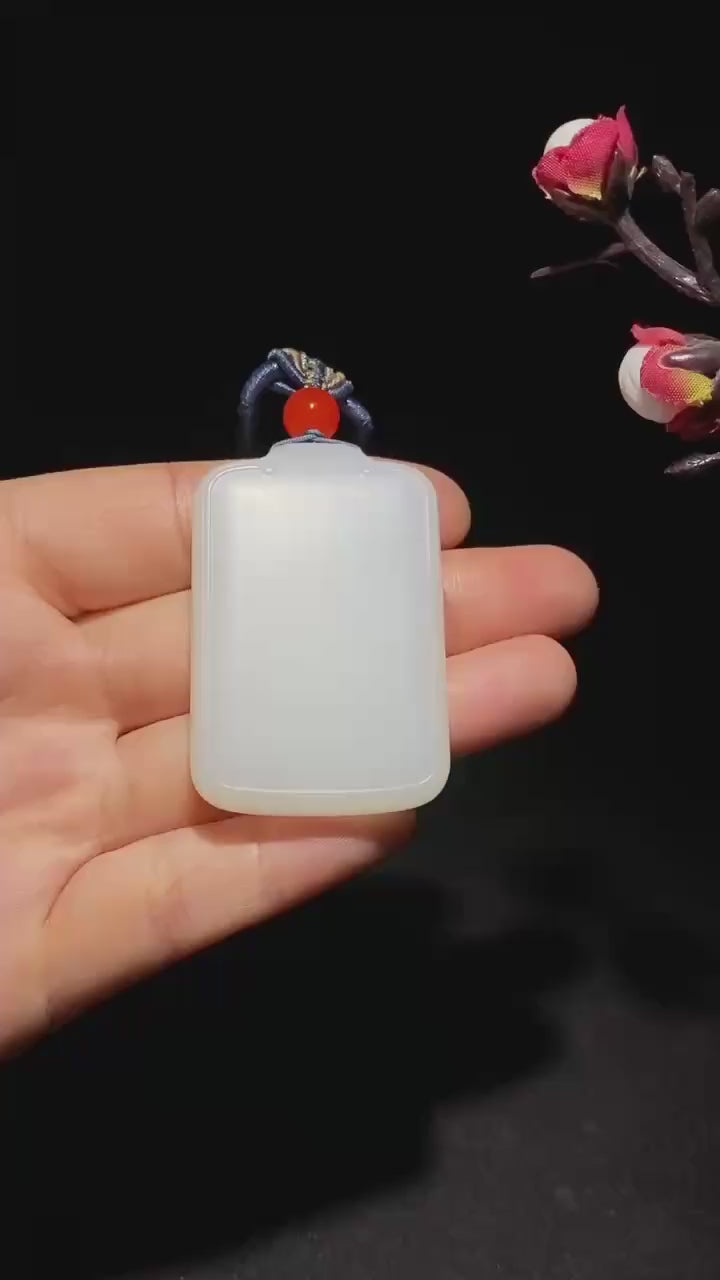 和田山料羊脂白玉无事牌,玉质细腻油润,脂粉醇厚,色泽柔和洁净,苏工细心打磨,牌型简约大气,时尚经典,实物更漂亮。寓意:平平安安,身心皆安。