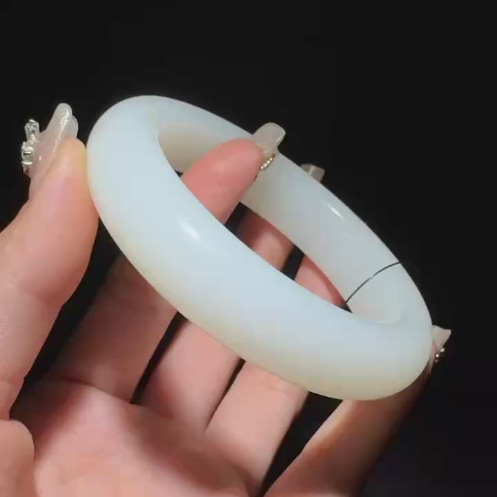 收藏级精品手镯, 料子干净细腻,无杂无裂,白度一级,油性十足,此料特点就是非常的润,一镯在手,有福相守,小姐姐必不可少的神器,佩戴高贵典雅,气质超然。